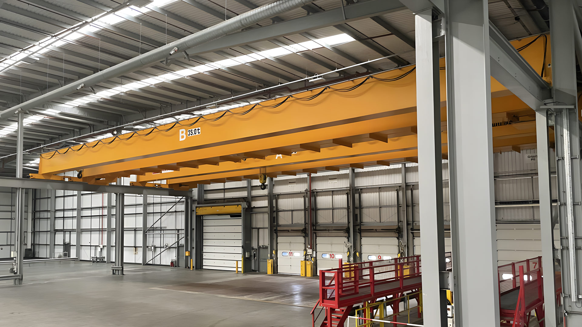 6. 根據(jù)起吊貨物的不同,起重機(jī)可配備吊梁磁鐵或電磁吸盤或抓斗或C型鉤;