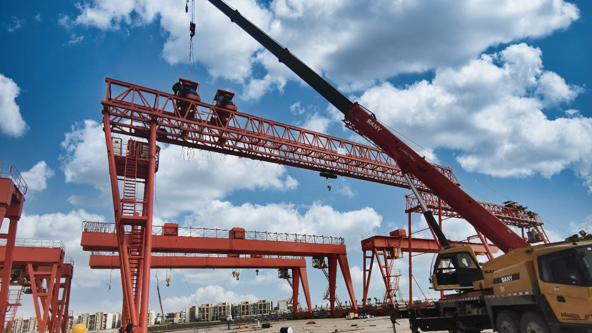 MELQ花架雙梁起重機(jī)是有軌運(yùn)行的中小型起重設(shè)備,主要由門架(主梁、支腿、下橫梁等)、起升機(jī)構(gòu)、運(yùn)行機(jī)構(gòu)及電控部分組成,以電動葫蘆作為起升機(jī)構(gòu),工作時沿主梁工字鋼下翼緣運(yùn)行。門架結(jié)構(gòu)為桁架桁架自重輕,抗風(fēng)能力強(qiáng)。整機(jī)具有自重輕、結(jié)構(gòu)簡單、安裝維修方便等特點(diǎn),適用于中小起重量范圍內(nèi)的廠礦、貨場及倉庫等室外場所作一般裝卸吊運(yùn)工作,禁止在有易燃、易爆及充滿腐蝕性氣體的環(huán)境中工作。